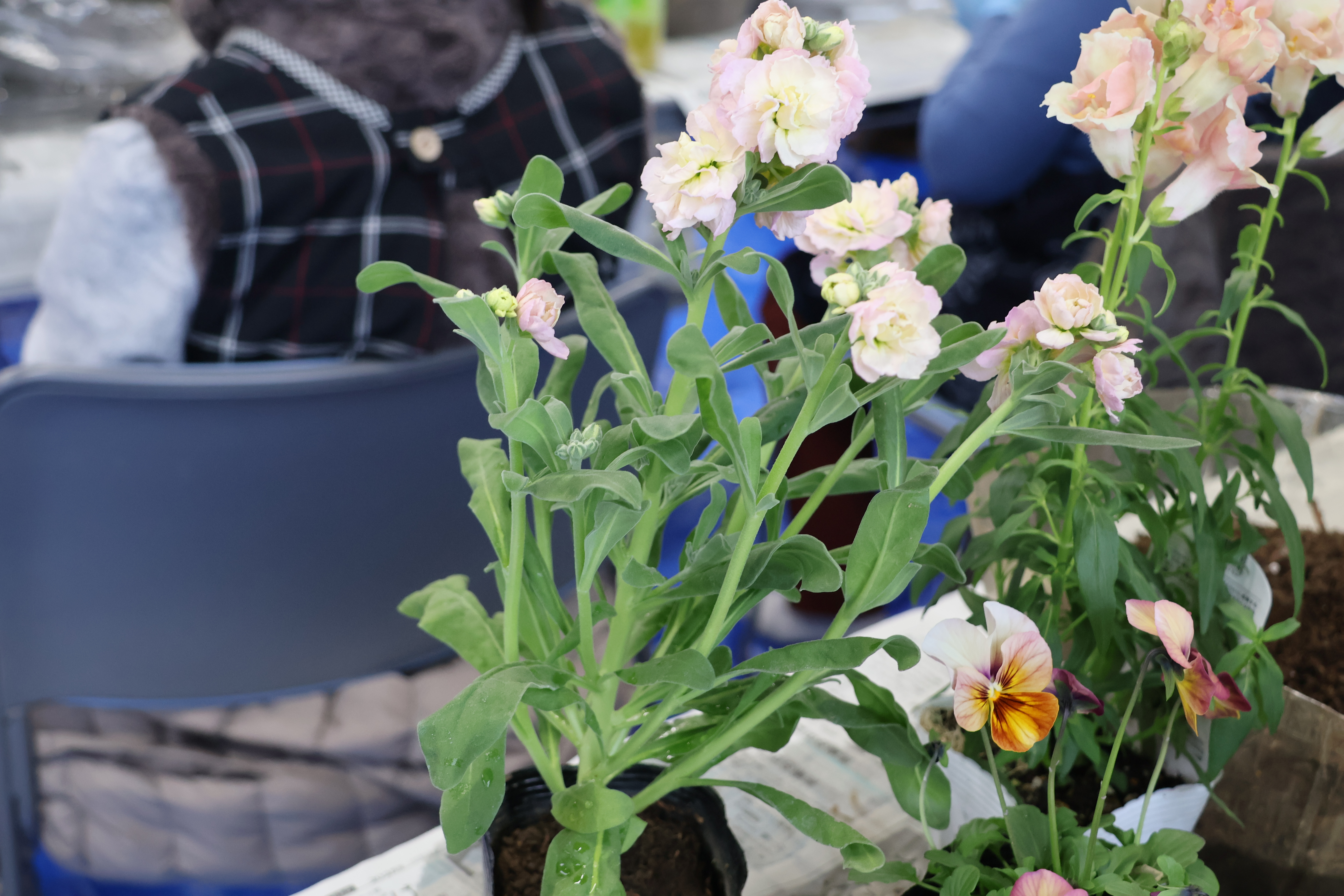 参加者はそれぞれにエプロン、手袋を持参し、宮森講師等の指導で手際よく冬の植物を器に植え、想い想いのかわいい鉢植えを作っていました。