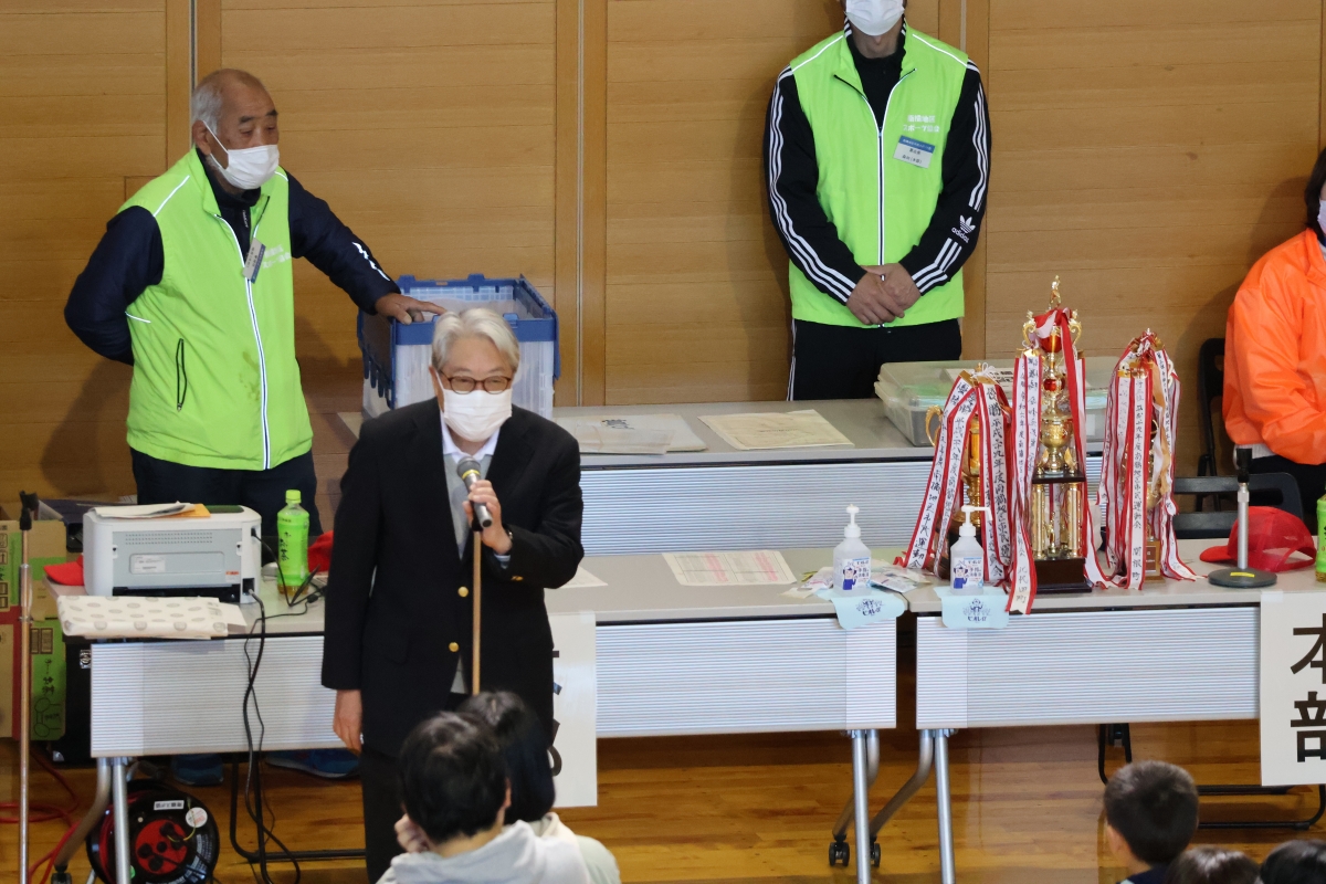 大会運営にあたった役員の皆さん、北風の中駐車場誘導整理にあたった防犯委員・青少年育成推進員の皆さんに感謝申し上げます。