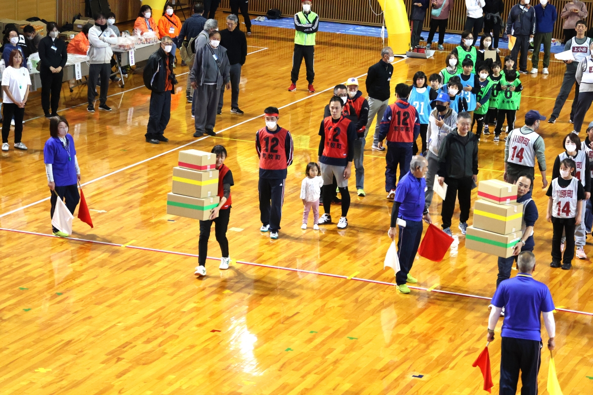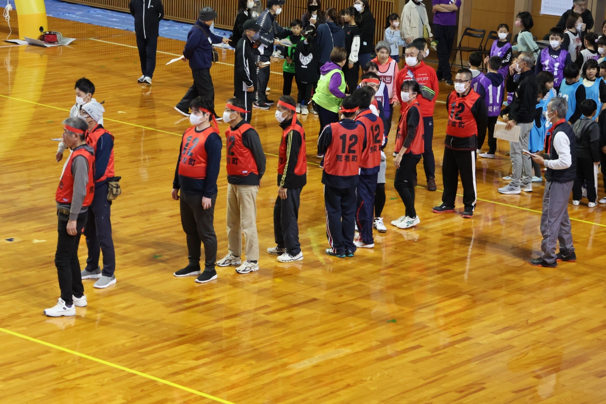 地区内の小学校ではインフルエンザによる学校閉鎖もあり子供たちの参加は少数でしたが、荒牧町は「体力自慢競争」や「ボール渡しリレー」など11種目に参加しました。