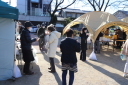 静かな天候の中、新年行事(お焚き上げ・新年会)が開催されました。新型コロナがまだまだ猛威を振るっているなかでしたが、今年も感染対策をして行われました。役員の皆さんは早めに集合し、テント張り等新年会の準備をしてお迎えしました。