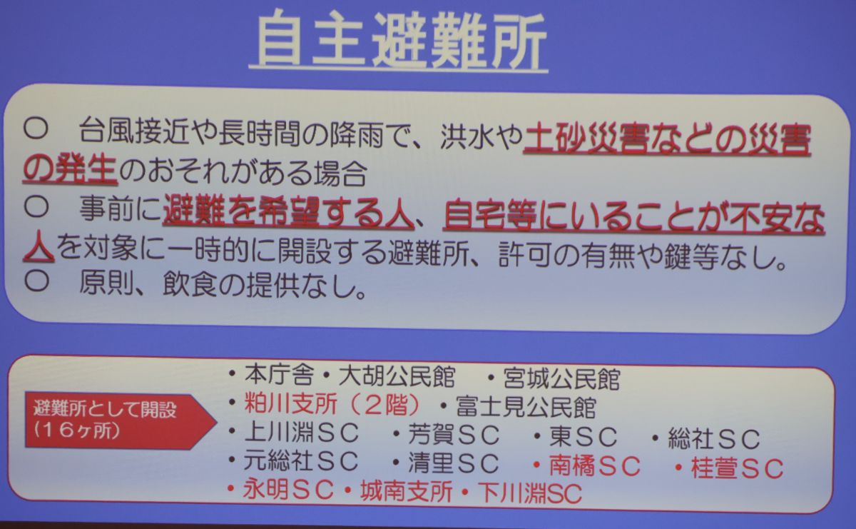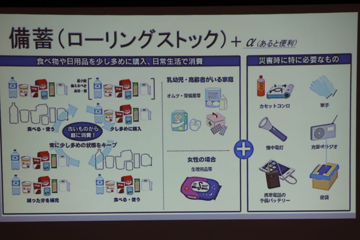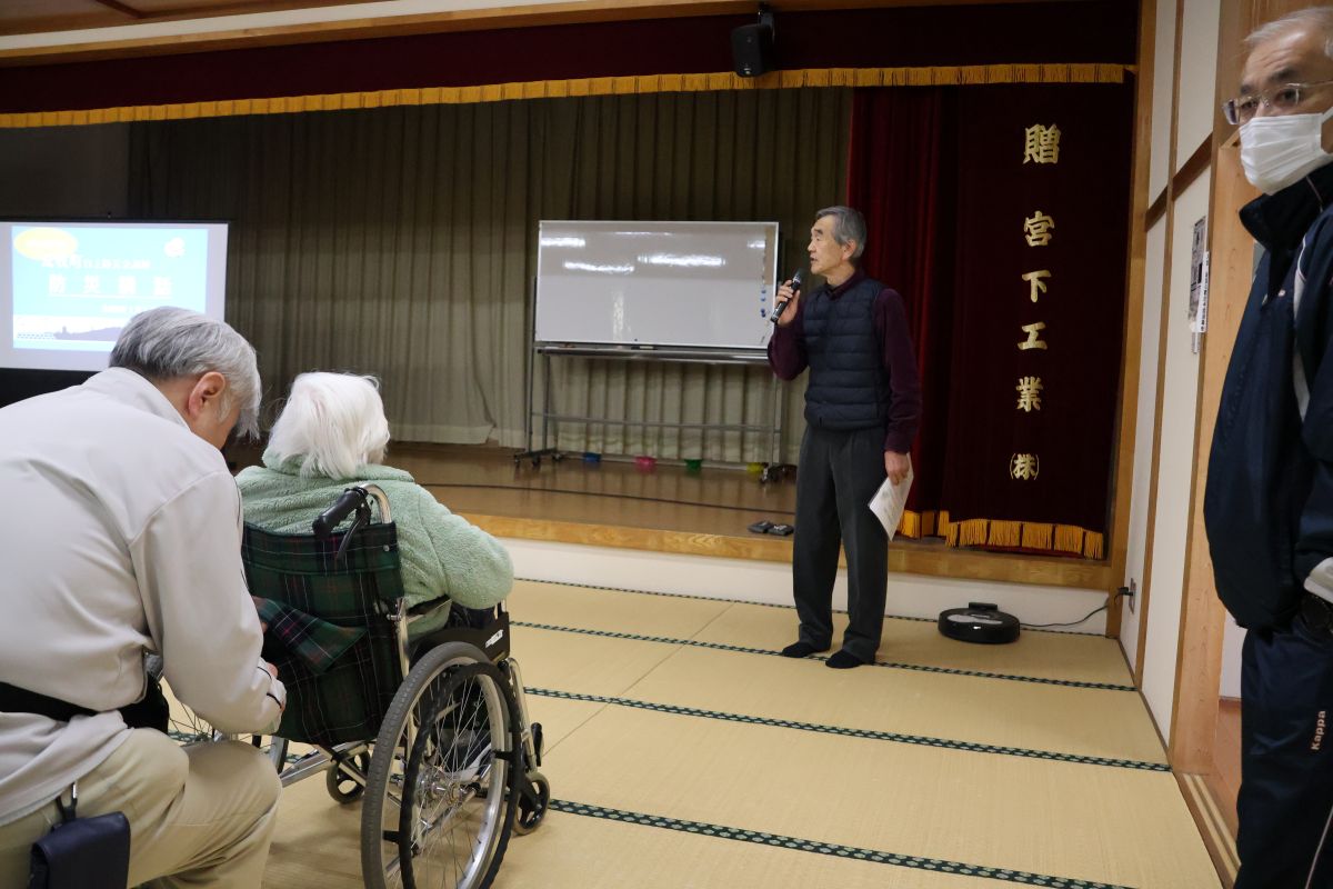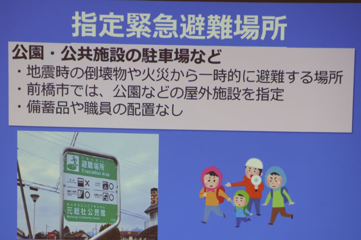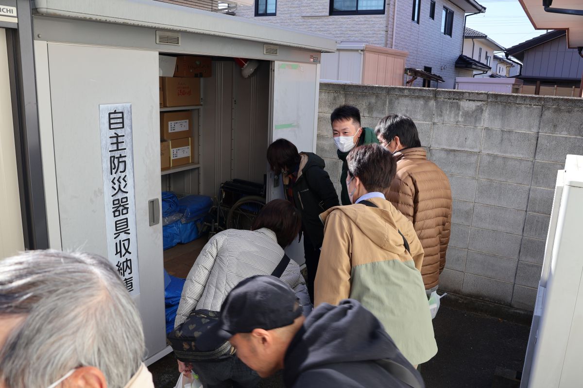 講義後、荒牧町の自主防災倉庫や今回導入した防災用蓄電池を見学して終了となりました。