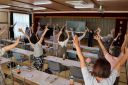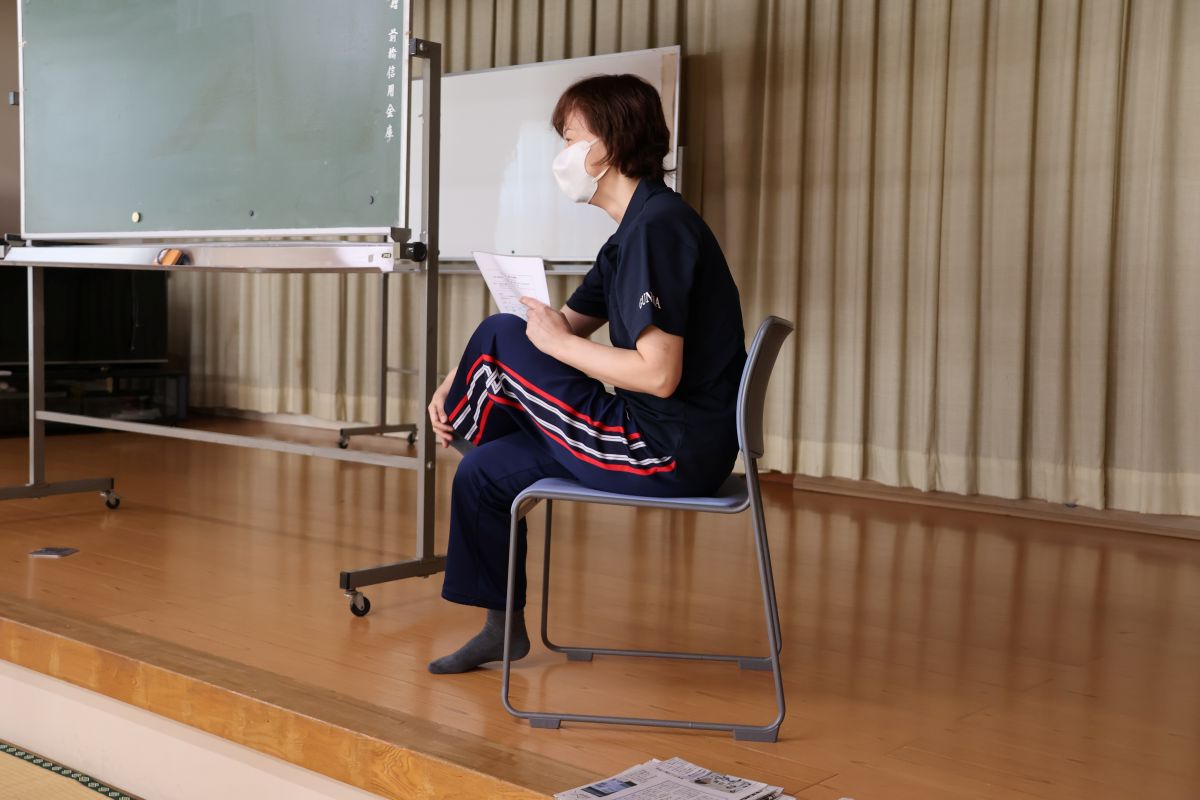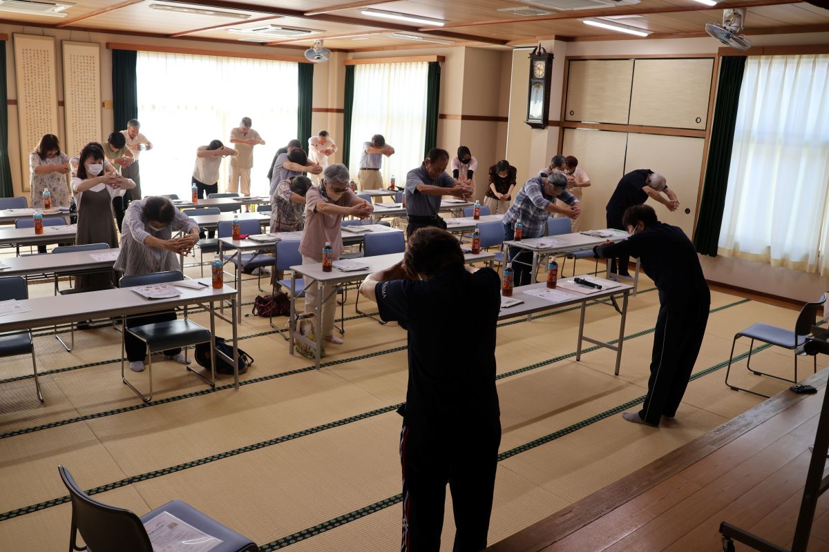 実技指導では細井指導員も加わり、簡単な運動を何種類かみんなで行い、体を動かすことの大切さ、みんなでやることの大切さを学び大いに盛り上がりました。