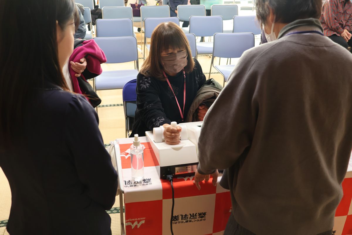 始めに専用の機器で受講者の骨の健康チェックを行いました。もっと骨を強くするにはカルシュウムやビタミン摂取はもちろん、日光を浴びたり適度な運動がとても大事と学びました。