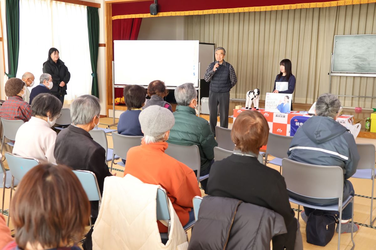 1月のふれあいいきいきサロンは、森永ライフの山浦講師を中心に主に骨と腸について食事や食生活習慣に関するお話でした。