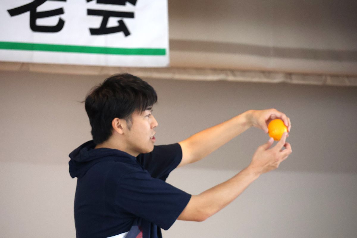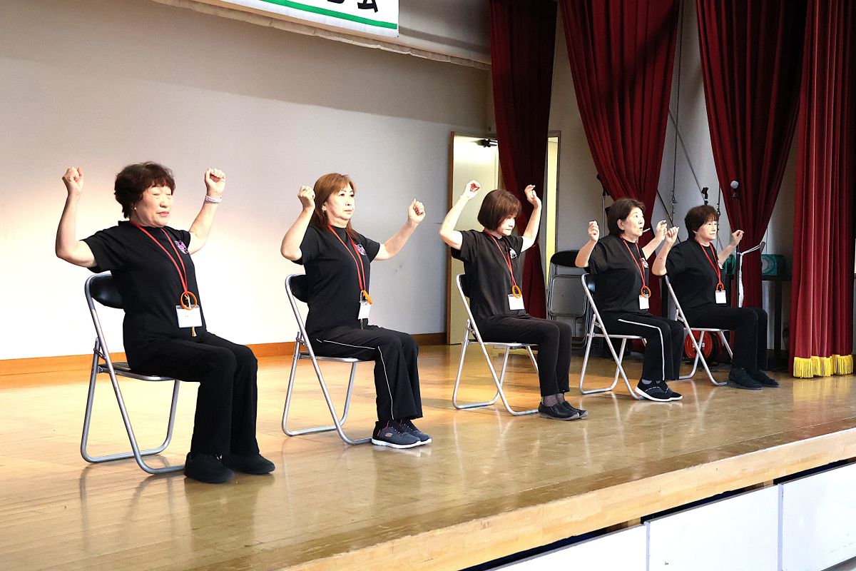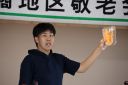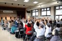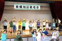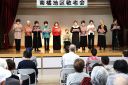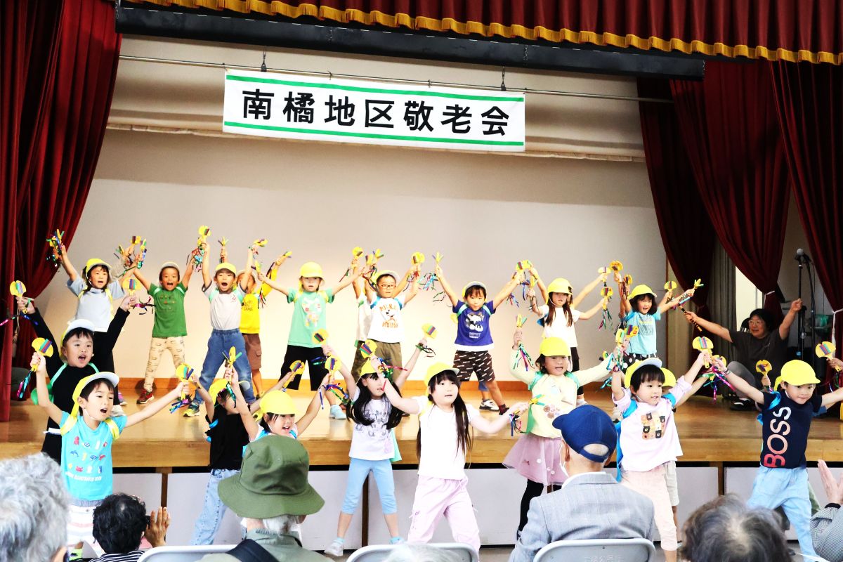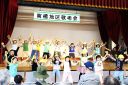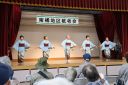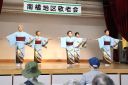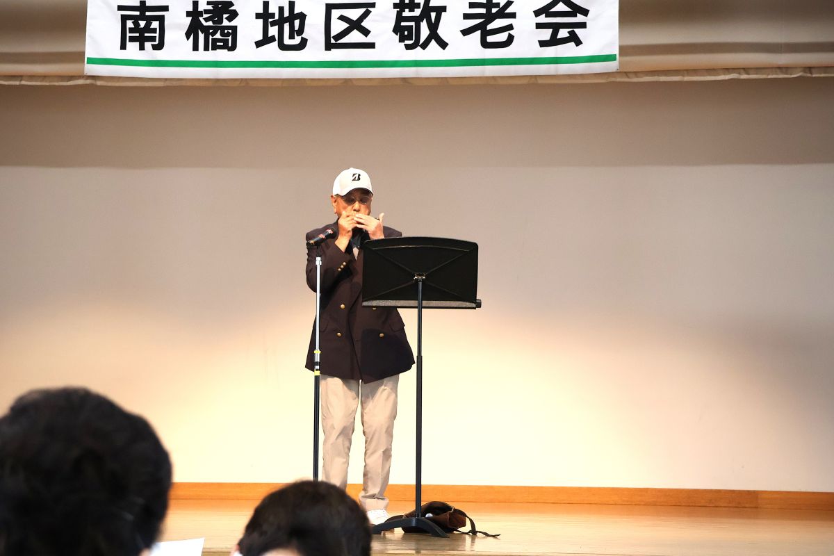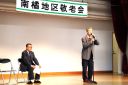 アトラクションでは添付敬老行事プログラムのとおり、南橘保育所園児の「こどもだんべえなんきつバージョン」から始まり、荒牧町の出し物として荒牧町民踊クラブ、荒牧カラオケ愛好会、小泉勲さんのハーモニカ独奏などの舞台披露があり、また日輪寺町からは現職おまわりさんの飯塚さんから「防犯マジックショー」として防犯意識のお話と鮮やかなマジックが披露され、会場は大いに盛り上がり、盛大な拍手が送られていました。途中休憩を兼ねて介護予防サポーターの「ピンシャン!元気体操」で体をリラックスさせるなどもあり、皆さん楽しい時間を過ごしていただけたことと思います。