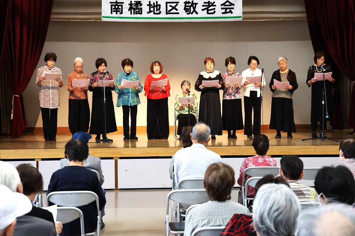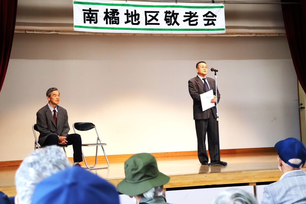 例年、南橘地区敬老会として行われていた行事が地区14町中7町の参加となり、今年は参加各町の主催形式で行われました。会場を南橘公民館にして開催の3日目(最終日)に荒牧町自治会・日輪寺町自治会合同で開催されました。75歳以上の方々が招待され、荒牧町から84名の皆さん(対象者893名、昨年より41名増)が元気に参加されました。