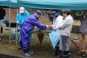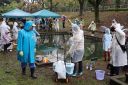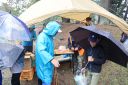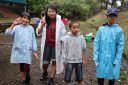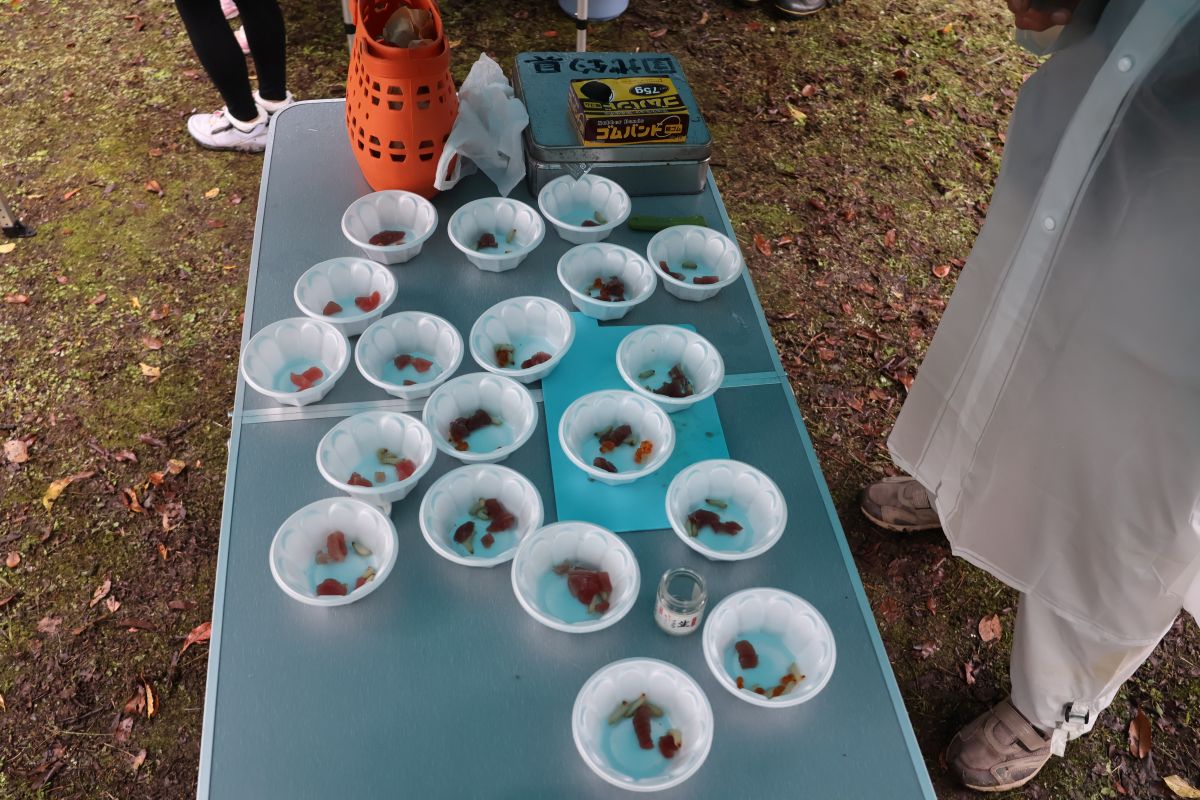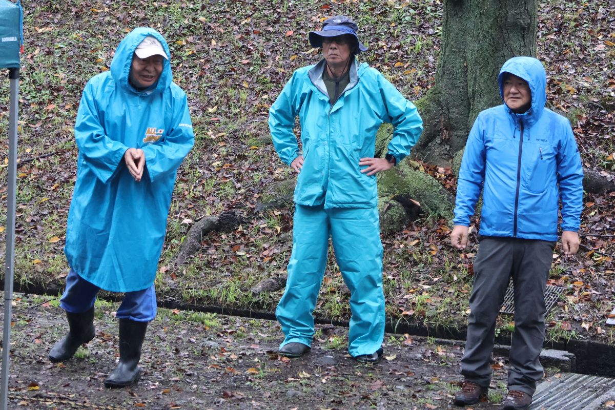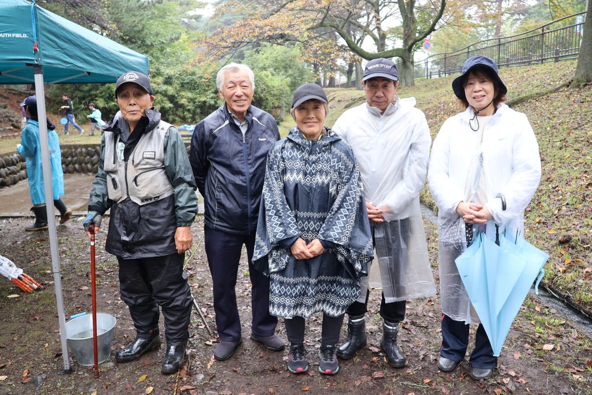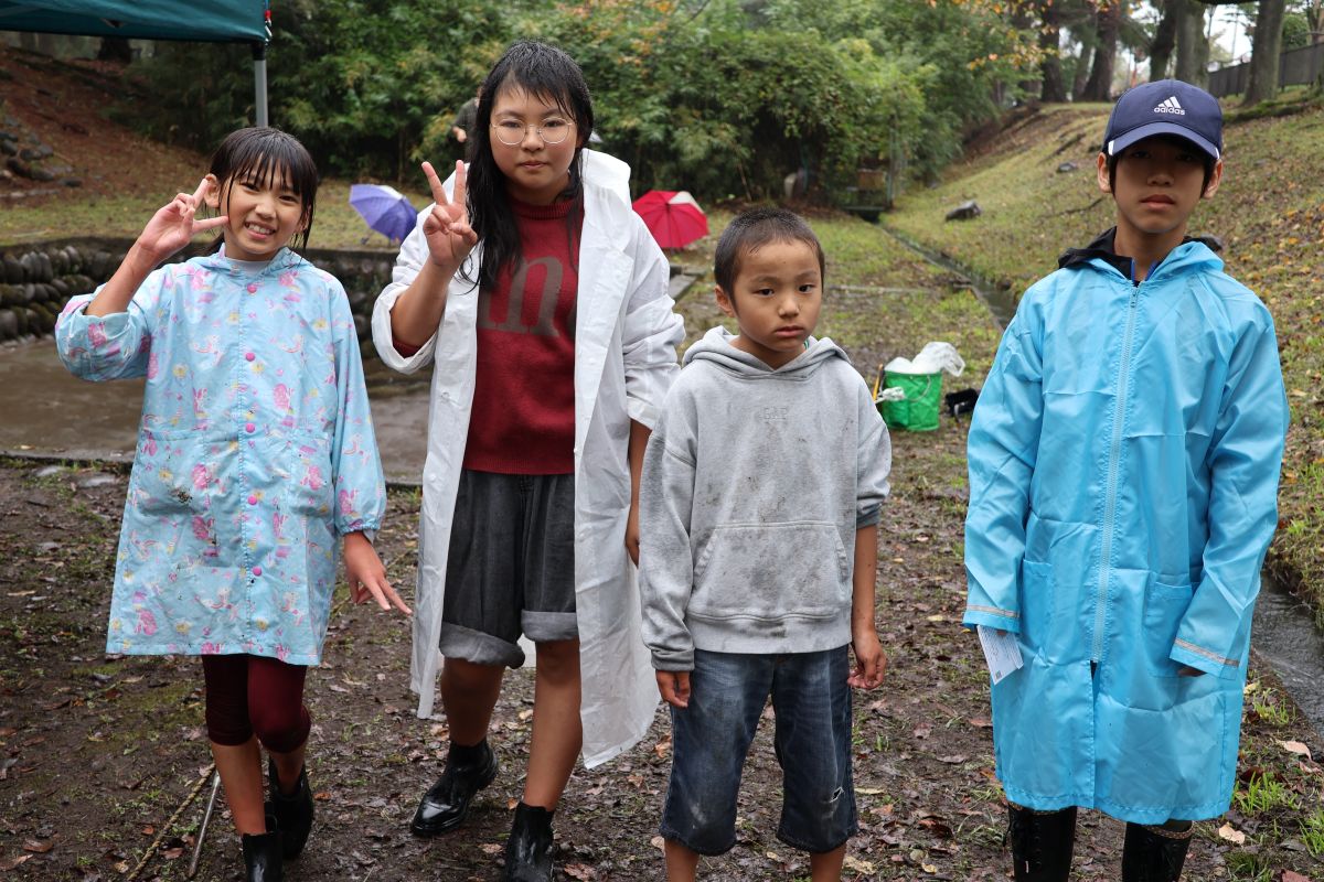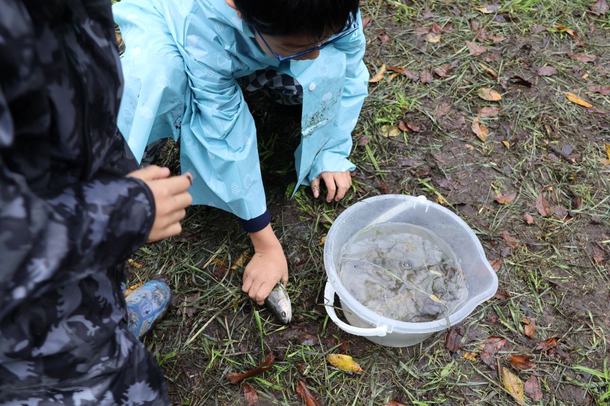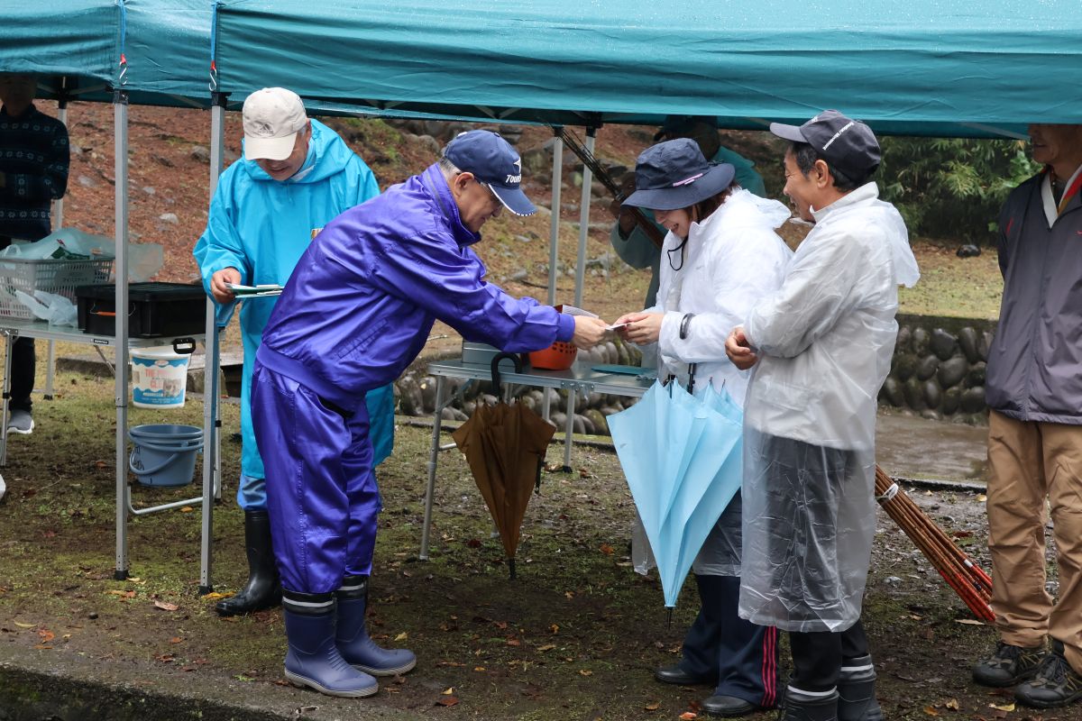 小雨の中、最初は釣れなかったものの段々に慣れて釣れてくると歓声が大きくなりました。熟練者が初心者にコツを教えるなど、90歳台のお年寄りから未就学児まで大いに楽しめたようです。その後、子供たちによるつかみ取りで大歓声の中盛り上がり、行事は無事終了しました。