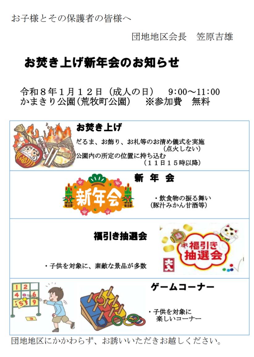 この開催に際し、地区代表や組長さんなど多くの役員の皆さんにご協力をいただきありがとうございました。今年も良い年でありますようお祈りいたします。