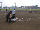 恒例の第29回南橘地区ソフトボール大会が開催されました。 南橘地区内12町のチームが参加し、Aクラス及びBクラスに分かれ、トーナメント方式で試合が行われました。 荒牧町チームはAクラスに参加しましたが、残念ながら初戦で敗退してしまいました。 今日は朝からのくもり空で、時々小雨のちらつく天候で応援者も少ない中、選手の皆さんは元気に活躍し、楽しく良い汗をかいていたようです。 また、試合前にバックネットの柱に20センチ程の蜜蜂の集団がいて、養蜂業者に取除いてもらうハプニングもありました。