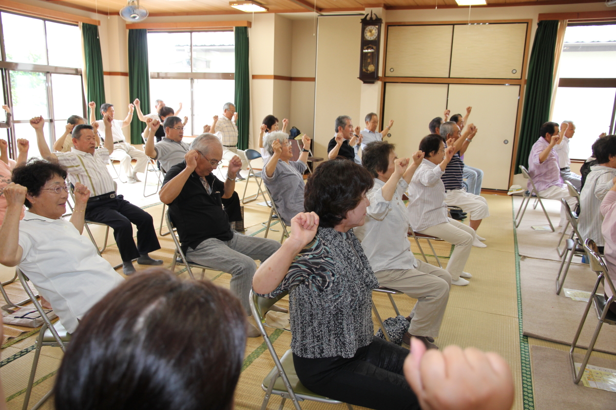 始めに、講師持参の資料(掲載資料)の説明があり、実技に入りました。手指を使っての頭の体操や元気体操の予備運動で体を慣らし、途中お茶の休憩をはさみました。「座って行うピンシャン元気体操」で心地よい汗をかき、笑いのある楽しい雰囲気の中で体操は終りました。