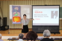今日の講師は、群馬ヤクルト販売梶@健康管理士の両先生です。講師持参の「腸年齢セルフチェック表」で自分の腸年齢を算出したり、腸を丈夫にすることが、健康で長生きにつながるなど映像と合わせての説明でした。