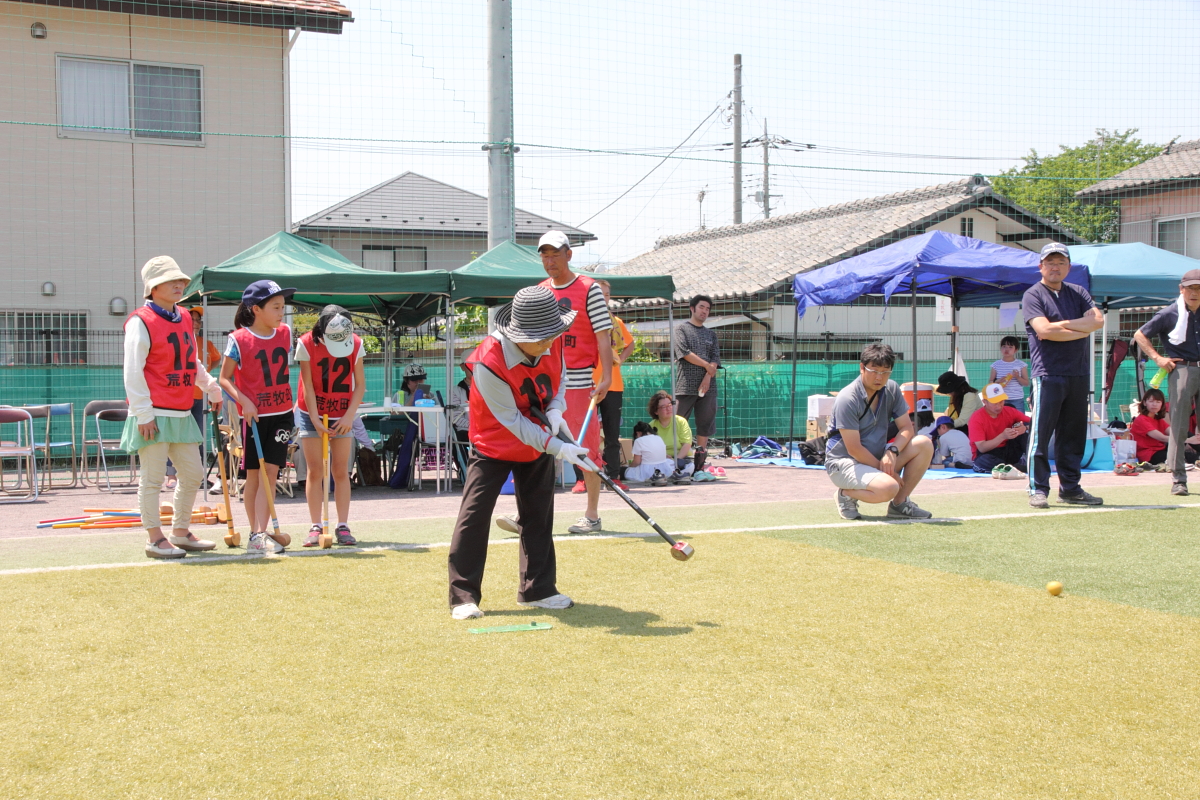 参加した子供達も初めてのゴルフのようでしたが、ホールが進むにつれて上手になり、三世代交流を図りながら、整備されたきれいな人工芝グラウンドでゴルフを皆で楽しんでいました。試合合間の昼食には、テントの日陰の下で、お弁当を食べながら懇親を深めているようでした。