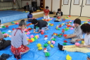 公民館隣接の倉庫から、やぐらの部材を運び出し、やぐらの立ち上げや芳名掲示板作り、会場の草取り等を行いました。公民館内ではやぐらに飾る、飾り花の作成などを行いました。